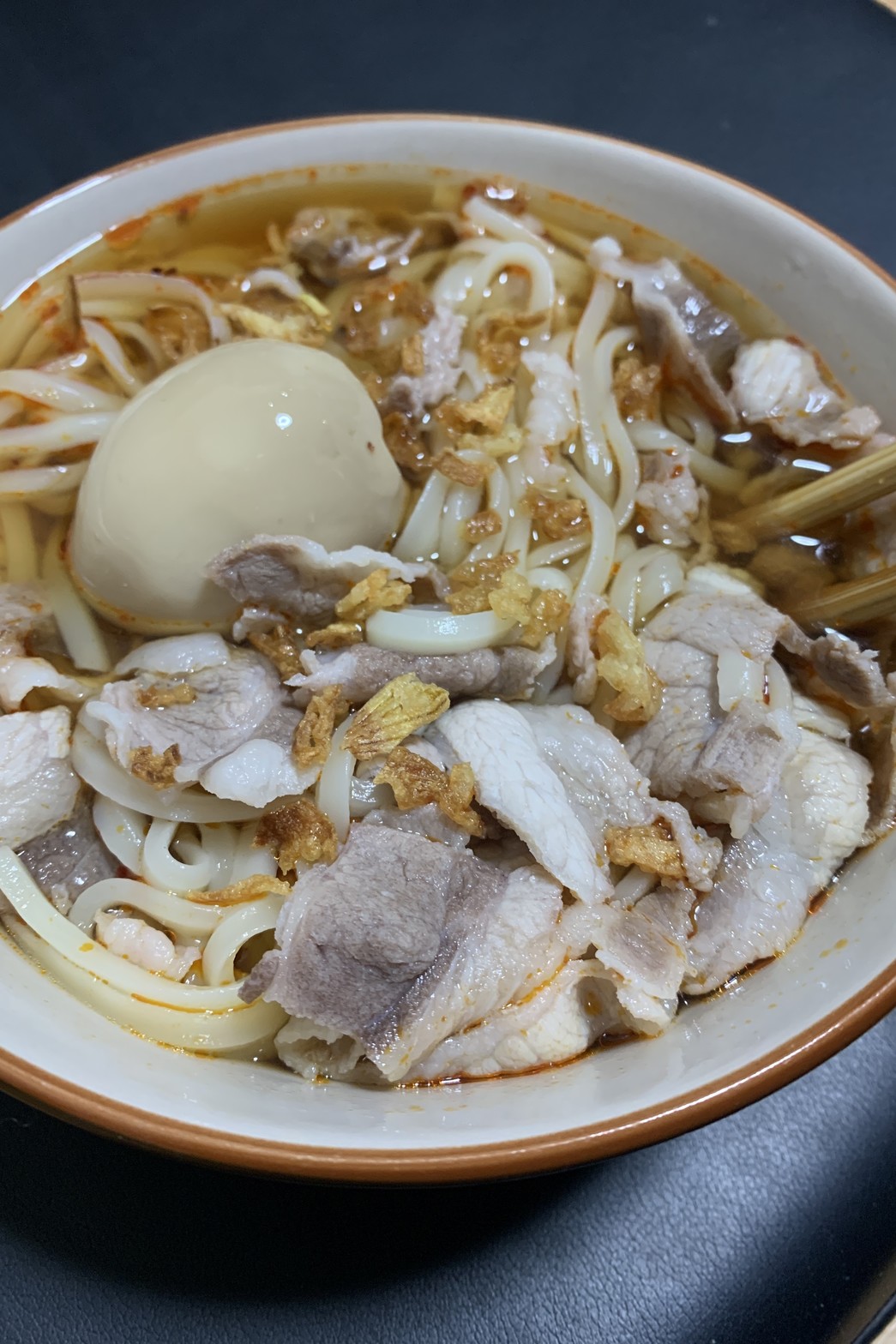 麺は極細ややかため、肉はチャーシューというより角煮、スープは光麺の匂いがするんだけどそれが何かはわからない。